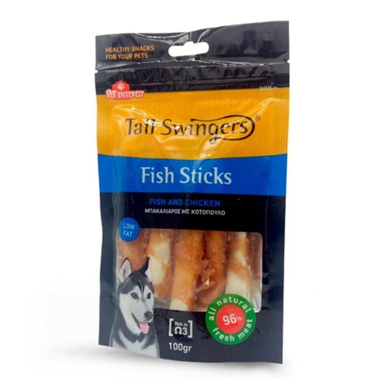 Fish Sticks Tail Swingers με μπακαλιάρο και κοτόπουλο για μικρούς σκύλους 100gr
