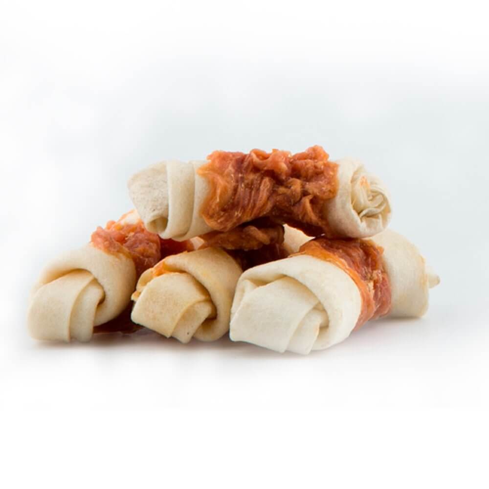 Κόμποι μάσησης από δέρμα βοδιού τυλιγμένο με φιλέτο κοτόπουλο. Κατάλληλο για σκυλιά έως 15 κιλά.